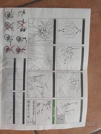 53cm altezza, 37cm larghezza, 40 cm profondità fino ai poggiapiedi + 7 cm le alette interne che proteggono le gambe dalla bici.