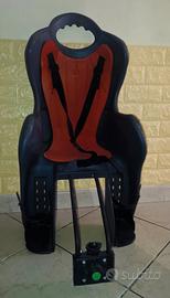 Seggiolino posteriore per bicicletta, ideale per il trasporto in sicurezza dei bambini. Destinazione:Progettato per essere montato sulla parte posteriore della bicicletta, solitamente fissato al portapacchi o al telaio. Sicurezza:Dotato di cinture di sicurezza regolabili e poggiapiedi con cinghie per trattenere i piedi ed evitare il contatto con i raggi. Capacità:Adatto per bambini dai 9 mesi fino a un peso massimo di circa 22 kg. Caratteristiche:Struttura avvolgente con schienale alto e protezioni laterali per maggiore comfort e sicurezza.