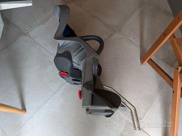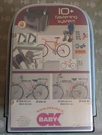 Seggiolino posteriore da bicicletta per bambini fino a 22 kg. Usato poche volte. Si fissa al tubo piantone del telaio. Poggiapiedi regolabili sul retro in altezza in 15 posizioni, dotati di cinturini di sicurezza per evitare che i piedi del bambino entrino in contatto con i raggi della ruota.
