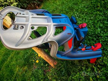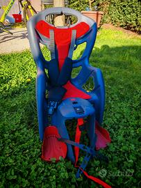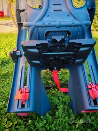Usato un paio di volte Condizioni come da foto. Peso max 22 kg Adatto per biciclette da 26 28 pollici Si installa facilmente sul portapacchi posteriore della bici tramite morsa (misure 120-170 mm) Cinture di sicurezza Regolatore altezza per i poggiapiedi Ritiro presso mio domicilio o ritiro in zona Lodi