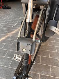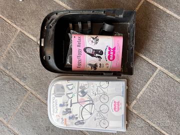 Seggiolino per bici OK Baby modello Eggy per montaggio posteriore completo di blocco di fissaggio per tubolari da: ø 28 a 40 mm e braccio di supporto. •Peso Massimo del bambino: dai 9 ai 22 kg •Altezza massima bambino: 110 cm. •Si fissa al tubo piantone del telaio. È adattabile a telai con diametro compreso tra 28 mm e 40 mm •La seduta è reclinabile anche con il bambino seduto. •Il seggiolino è regolabile longitudinalmente in 8 diverse posizioni, in modo da garantire l’assetto ottimale su molteplici tipi di telaio. •Poggiapiedi: regolabili in altezza in 15 posizioni, dotati di cinturini di sicurezza per evitare che i piedi del bambino entrino in contatto con i raggi della ruota. •Braccio di supporto che ammortizza le asperità del terreno. •Misure ingombro seggiolino b 40 x h 85 x p 35 cm. Blocco di fissaggio con sistema antifurto.