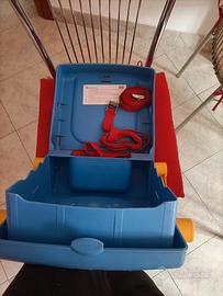seggiolino in plastica. per rialzo sulle normali sedie con cinghie ddi sicurezza per aggancio.