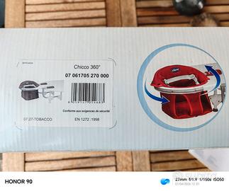 Seggiolino da tavolo Chicco 360°. Pari a nuovo, usato pochissimo, color tabacco (testa di moro), completo di scatola, istruzioni e borsa per il trasporto. Consegna a mano a Torino o spedizione a vostre spese.