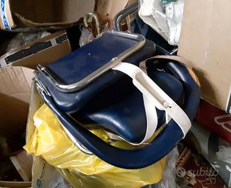 Seggiolino da tavola per bambini vintage in metallo e materiale imbottito