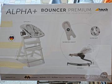 vengo seggiolone Alpha + bouncer premium colore rosa con accessori. omelette da scatola in foto (sdraietta, supporto per sdraietta, vassoio, copertura)
