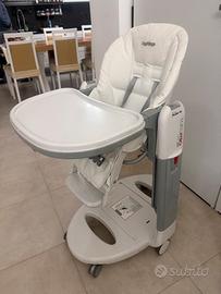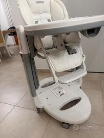 Seggiolone bambini multifunzione Peg Perego TataMia Follow Me , omologato dalla nascita 0-15 kg, robusto pieghevole e compatto , 6 ruote antigraffio con freno , con funzione seggiolone o sdraietta o dondolo. Regolazione in altezza in 9 posizioni. Schienale reclinabile e pedanetta poggiapiedi regolabile. Chiusura pratica e compatta che permette al seggiolone di stare in piedi da solo. Doppio vassoio rimovibile con porta bicchiere. Cinture di sicurezza a 5 punti.