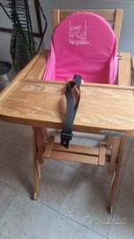 Foppapedretti Seggiolone Il Sediolone, Made in Italy, per bambini, Chiudibile con Struttura in Legno Massiccio Posizionabile a 2 Altezze, Savanzalino Ribaltabile, Schienale Regolabile, Naturale, cuscino imbottito.