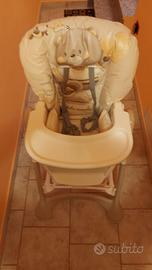 Seggiolone Campione CAM modello S2300 completo di accessorio coprivassoio trasparente, buono stato con imballo originale. Caratteristiche principali: •Regolabile in altezza (6 posizioni) e inclinazione dello schienale (3 posizioni), per accompagnare il bambino dalla pappa ai 36 mesi. •Dotato di cinture di sicurezza a 5 punti, imbottitura morbida e stabile struttura a 4 gambe. •Sedile ampio e imbottito, poggiapiedi regolabile e vassoio removibile con due portaposate + coprivassoio trasparente. •Facile da aprire e chiudere con una sola mano, compatto da riporre quando non in uso. Spedizione esclusa, solo consegna manuale e pagamento in contante.