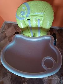 SEGGIOLONE BREVI CON SCHIENALE RECLINABILE, SEDUTA REGOLABILE IN ALTEZZA, DOPPIO VASSOIO CON PORTABICCHIERE, TRASFORMABILE IN COMODA SEDIA, PEDANA POGGIAPIEDI, CINTURE E RUOTE POSTERIORI