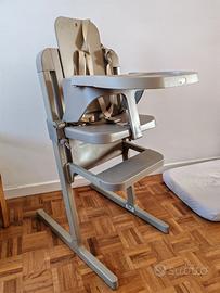 seggiolone Brevi Slex Evo per tavolo alto e penisola in cucina. Seggiolone con regolazione continua della seduta in altezza, in 4 posizioni in profondità e con poggiapiedi regolabile.