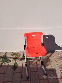 Seggiolone ben conservato, ottimo perché si adatta alla crescita e va bene sia per tavoli che per piani rialzati. Accompagna il bambino dalle pappe fino a che non inizia ad utilizzare le normali sedie. Regge anche gli adulti. Completo di imbottitura e cinturini di sicurezza