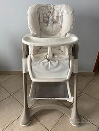 Vendo seggiolone CAM con schienale reclinabile, in buone condizioni, con tutte le dotazioni: cinture di sicurezza, ruote per spostarsi, rete porta oggetti.