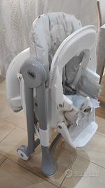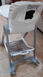 Seggiolone Campione CAM. Struttura e vassoio in perfette condizioni. L'imbottitura è danneggiata a causa della normale usura dovuta all'uso, facilmente sostituibile, la si può acquistare nuova on-line a circa 30€. Per bambini tra 5 e 36 mesi. Interamente progettato e prodotto in Italia. Si apre e si chiude con una sola mano impugnando la maniglia posta sul cestino. Sempre con una sola mano si regola l'altezza della seduta (6 posizioni). E’ dotato di un nuovo meccanismo brevettato d'inclinazione sincronizzata di schienale e poggiapiedi (4 posizioni). Le ruote posteriori sono dotate di freno, ed unitamente alle sfere anteriori carenate rendono semplici gli spostamenti in tutte le direzioni. Campione è dotato di spartigambe, cinghia a cinque punti e secondo vassoio di sicurezza. L'ampio vassoio rimane orizzontale una volta poggiato sul tavolo. Cestino portaoggetti di serie. Una volta chiuso Campione occupa pochissimo spazio e si regge in piedi da solo. Sottoposto a test di stabilità laterale, frontale e posteriore per evitare il rischio di ribaltamento del prodotto con dentro il bambino. Realizzato in Italia con materiali completamente atossici.
