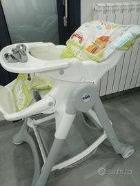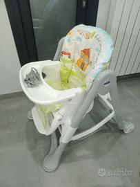 Vendo seggiolone cam completo di cuscinetto, cinte, 3 modi di inclinazioni, 3 modi di fare la pappa, 3 altezze, cesto portatutto, freni e blocco.