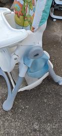Dotato di cinture di sicurezza a 5 punti e ruote posteriori con freno