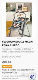 Seggiolone Chicco Polly magic relax. condizioni buone con qualche scolorimento sul rivestimento. la poltrona è inclinabile e può essere abbassato come una poltroncina.