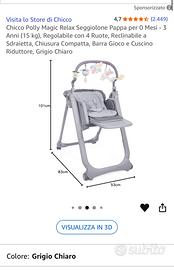 Seggiolone chicco con diverse altezze, con giostrina reclinabile fino a modalità sdraiata. Utilizzabile a 0 mesi Usato ma tenuto benissimo Chicco Polly Magic Relax Seggiolone Pappa per 0 Mesi - 3 Anni (15 kg), Regolabile con 4 Ruote, Reclinabile a Sdraietta, Chiusura Compatta, Barra Gioco e Cuscino Riduttore, Grigio Chiaro