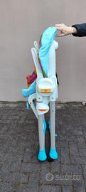 Vendo seggiolone Chicco modello Polly, uno dei più versatili e robusti della gamma. Il seggiolone è caratterizzato da una vivace fantasia a tema "giungla/animali" (elefante, giraffa, leone) con colori brillanti che rendono il momento della pappa allegro e stimolante. Caratteristiche principali: Adattabile: Segue la crescita del bambino. La seduta è regolabile in altezza in diverse posizioni e lo schienale è reclinabile per il relax post-pappa. Doppio Vassoio: Ampio vassoio principale con copri-vassoio azzurro rimovibile (facile da lavare anche in lavastoviglie). Sicurezza: Dotato di cinture di sicurezza a 5 punti e spartigambe rigido. Compatto: Struttura pieghevole che sta in piedi da sola, ideale per chi ha poco spazio. Dispone di ruote posteriori per spostarlo facilmente in casa. Extra: Include un comodo tavolino laterale porta-oggetti/biberon. Condizioni: Il seggiolone è in ottime condizioni generali, pulito e pronto all'uso. Le imbottiture sono integre e i meccanismi di chiusura e regolazione funzionano perfettamente.