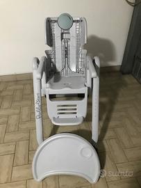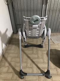 Seggiolone Polly 2 Chicco per neonati dalla nascita a tre anni, 4 ruote 2 con freno, schienale inclinabile, vassoio, chiusura sta in piedi da solo struttura nuova ? 40,00 Imbottitura presente ma precocemente usurata, ma sostituibile con una nuova universale Giordani dal costo di ? 22,00 nei negozi Bimbostore.