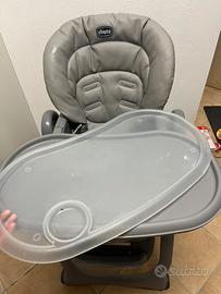 PRATICO E REGOLABILE: 8 livelli di regolazione in altezza e seduta morbida in similpelle, facile da pulire con una spugnetta; una volta chiuso il seggiolone è compatto e può essere riposto facilmente