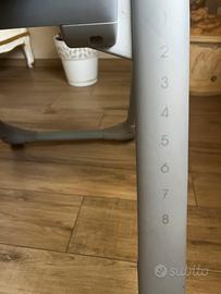 REGOLABILE in 8 livelli di altezza e seduta morbida in similpelle, anche il vassoio; è reclinabile in 3 posizioni. Con 4 RUOTE: Il seggiolone può essere spostato senza problemi per affiancarlo al tavolo o cambiarne la posizione sia da aperto che da chiuso.