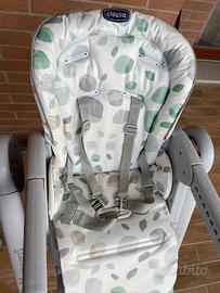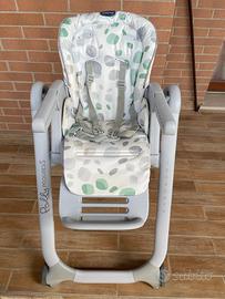 Schienale reclinabile per i primi mesi e il relax post pappa. Poggiagambe e poggia piedi regolabili per adattarsi alla crescita del bambino.