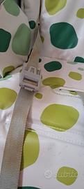 Presenta segni di usura vicino al poggiapiedi e le fibbie sono ingiallite.