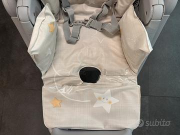Seggiolone utilizzabile dalla nascita fino ai 3 anni, con schienale regolabile e regolabile in altezza.L’imbottitura originale è stata rotta.Quella in foto è una universale della Cam(rotta a sua volta nella zona gambe).Struttura in perfette condizioni.
