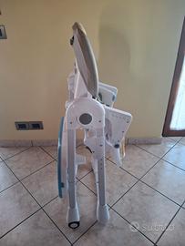 vendo seggiolone usato ma molto ben tenuto, perfetto nelle sue parti, con segni di normale utilizzo solamente sul vassoio removibile. Il gruppo vassoio si può rimuovere per mangiare a tavola, con 7 altezze regolabili. richiudibile per minimo ingombro