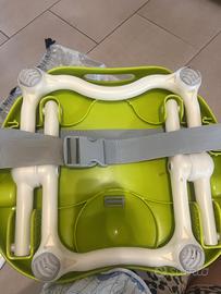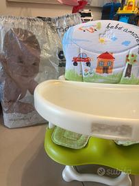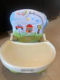 seggiolone da sedia, utile x quando siete fuori di casa x far sedere il vostro bimbo in tutta tranquillità e per tenerlo al tavolo con voi. con vassoio e cinture x legare il bambino e x fissarlo alla sedia.