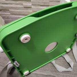 Seggiolone da sedia, con imbragatura da tenere il bambino in sicurezza, l'appoggio per piatti e bicchieri. Portatile