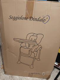 Il seggioloneDindalò di Aziamorè un prodotto 3-in-1 che funge da seggiolone pappa, sdraietta e dondolo manuale. È regolabile in altezza e reclinazione per garantire il massimo comfort.