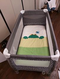 vendo seggiolone come nuovo regolabile e lettino completo di materasso trapunta e lenzuolini
