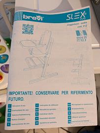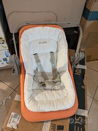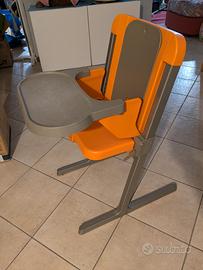 seggiolone con vassoio e appoggia piedi più sdraietta con imbottitura Brevi Slex Evo colore arancione.
