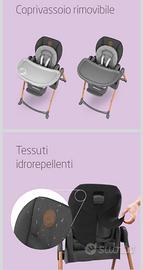 FACILE DA UTILIZZARE: il seggiolone evolutivo può essere alzato e abbassato per adattarsi all'altezza del tavolo, usando una sola mano per regolare o rimuovere il vassoio e per reclinare lo schienale