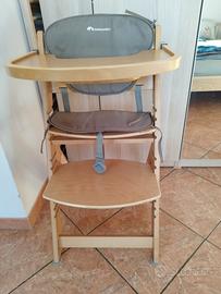 seggiolone evolutivo come nuovo usato pochissimo in legno naturale con sedute imbottite removibili