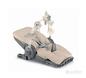 Oltre al seggiolone c’è un cuscino che funge anche da riduttore ed un arco a cui appendere i giochini (inclusi) quando nei primi mesi viene usato come sdraietta.