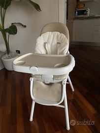 Colore beage, seduta in pelle facile da pulire, vassoio con ripiano staccabile che facilita la pulizia ad ogni pasto.