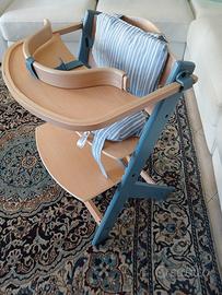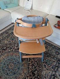 vendo seggiolone evolutivo PAPPA ENOCK in legno x bimbi da 3 mesi a ragazzi di 35 kg. Trasformabile in sedia anche da scrivania. Dotato di cuscini e di color legno e azzurro . MAI USATO. Ritiro a carico acquirente
