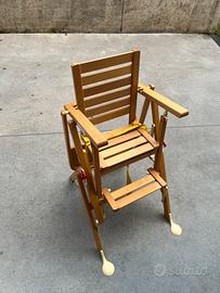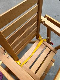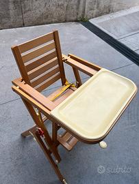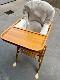 Bellissimo seggiolone, Foppapedretti in legno con rivestimento e piano d’appoggio in plastica.