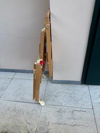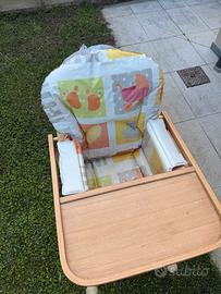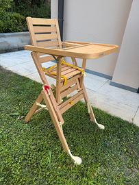 Venso seggiolone foppapedretti in legno, posizionabile su due altezze, è dotato di ampio vassoio ribaltabile per poter avvicinare il bambino al tavolo da pranzo, ha lo schienale con inclinazione regolabile che segue le esigenze del bambino.
