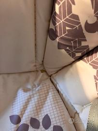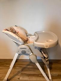 Seggiolone chiudibile Meeting Foppapedretti con schienale regolabile 3 posizioni, imbracatura a 5 punti, vassoio regolabile in 3 posizioni e vassoietto addizionale removibile.