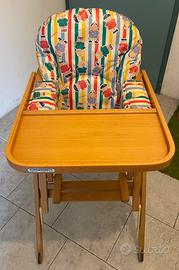 Foppapedretti Seggiolone Made in Italy, per bambini, in ottime condizioni, chiudibile con Struttura in Legno naturale con cuscino imbottito.