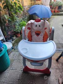 seggiolone gallo chicco, completo buone condizioni con pioggia piedi, due vassoi, diverse misure di altezza, piegabile