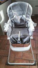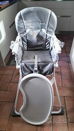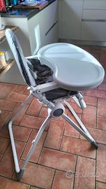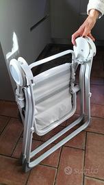Seggiolone pieghevole comodamente trasportabile completo di vassoio per vivande.