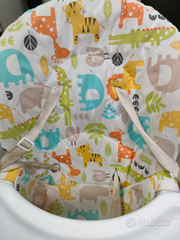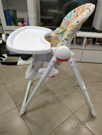 Seggiolone utilizzabile da 6 mesi più. Chiusura a libro schienale regolabile in 3 posizioni, altezza seduta regolabile in 6 posizioni, cintura a 5 punti vassoio removibile.