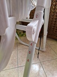 Seggiolone utilizzabile da 6 mesi più. Chiusura a libro schienale regolabile in 3 posizioni, altezza seduta regolabile in 6 posizioni, cintura a 5 punti vassoio removibile.