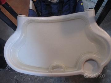 Seggiolone Giordani con chiusura a libro. Doppio vassoio di cui uno removibile, si chiude facilmente ripiegandosi su se stesso. Schienale reclinabile e altezza regolabile. Dotato di cuscino imbottito e 4 ruote di cui 2 con freno. Usato in buone condizioni.
