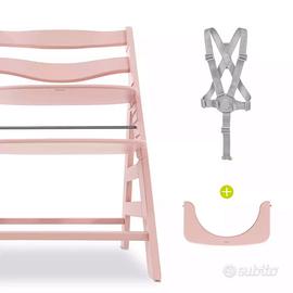 Vendo bellissimo seggiolone in legno Hauck Alpha+ nell'esclusiva colorazione Rose (un rosa antico/salmone molto elegante, fuori catalogo e difficile da trovare). Si tratta di una sedia evolutiva di ispirazione montessoriana, studiata per seguire la crescita del bambino dai 6 mesi fino all'età adulta (regge fino a 90 kg). Caratteristiche e Condizioni: • Accessori: Inclusa la barra di protezione anteriore in legno e la cinghia spartigambe di sicurezza. • Stato: La sedia è solida, stabile e perfettamente igienizzata. Essendo un oggetto usato con amore, presenta alcuni piccoli e normali segni di usura sulla vernice (piccoli graffietti superficiali che non ne compromettono assolutamente l'estetica né la funzionalità). • Regolazioni: Seduta e pedana poggiapiedi regolabili in altezza e profondità in pochi minuti. Perché sceglierlo: È l'alternativa perfetta alla Stokke Tripp Trapp: stessa robustezza e design, ma molto più accessibile. Il colore Rose si adatta perfettamente a qualsiasi arredamento moderno.