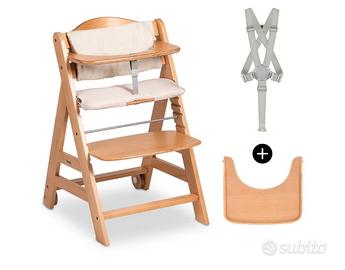 Vendo seggiolone Hauck Beta+, Naturale - Kit Seggiolone Pappa con Ruote, Vassoio, Barra Protettiva, Cuscino di Seduta, Cintura a 5 Punti e Cinturina Inguinale - per Bambini 6 Mesi fino a 90 kg - Legno di Faggio.